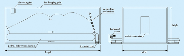 The caterpillar type belt inside the ice storage will move the ice continuously to the ice crushing device. Less contact with motion mechanism, meeting hygienic standard requirement.