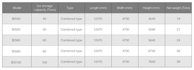 Ice storage capacity: 40~100 ton.